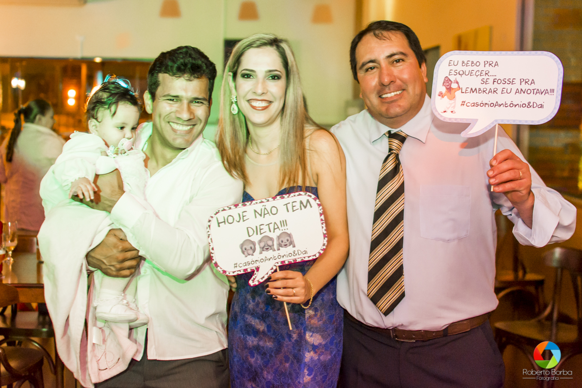 Enfim o grande dia chegou, quando a Dai entrou em contato comigo,através da indicação de uma amiga em comum, sentimos que nos conectamos desde a primeira conversa. A Dai é uma guerreira, mulher extraordinária, com um gênio forte, elétrica mas muito extrovertida e determinada. O Antônio já é o oposto, quietinho, sempre na dele, mas um homem digno, trabalhador, pai dedicado. Os olhares entre os dois mostra o quanto eles se amam.. Minha felicidade foi imensa em poder registrar esse dia tão lindo na vida dos dois. Antonio e Daiane, que Deus continue abençoando a vida de vocês. Meu agradecimento especial também para minha assistente Jadiane que cumpriu seu papel maravilhosamente bem. Meu agradecimento ao Guilherme e ao Lorival pela linda decoração do local e por toda dedicação como cerimonialistas. Agradecer também ao Restaurante Carmenere Grill pela excelente recepção, e prestatividade em todos os serviços.